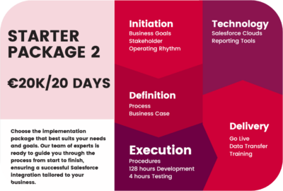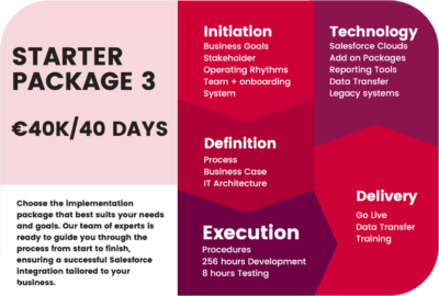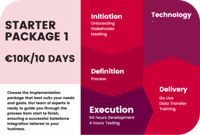 Choose the implementation package that best suits your needs and goals. Our team of experts is ready to guide you through the process from start to finish, ensuring a successful Salesforce integration tailored to your business.