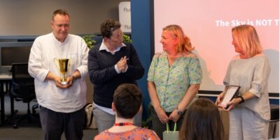 Gibalová forteller at Jotron vant Fludios kundepris for ”The sky is NOT the limit” på sist kundearrangement.